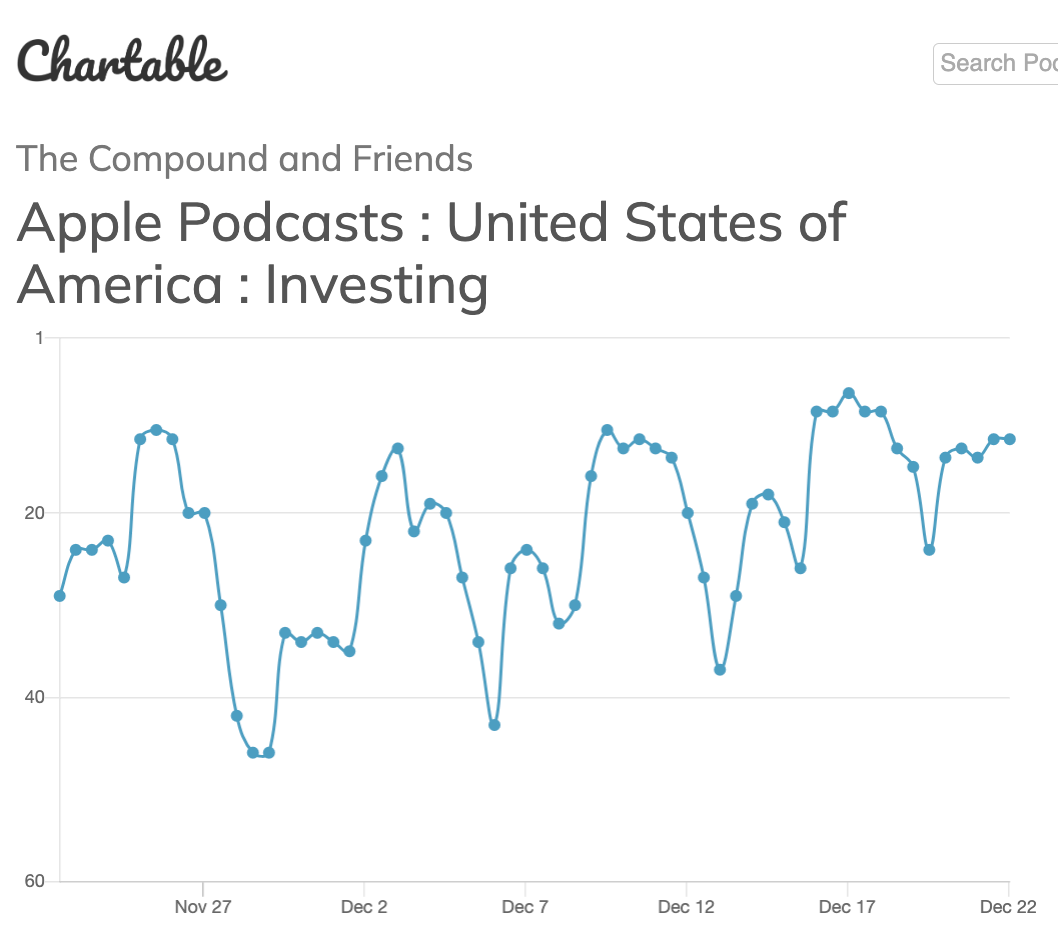 This year you guys made The Compound and Friends a top ten show by downloads in the Investing category (data via Chartable and Megaphone). We’re either number 6 or 7 every day upon release.