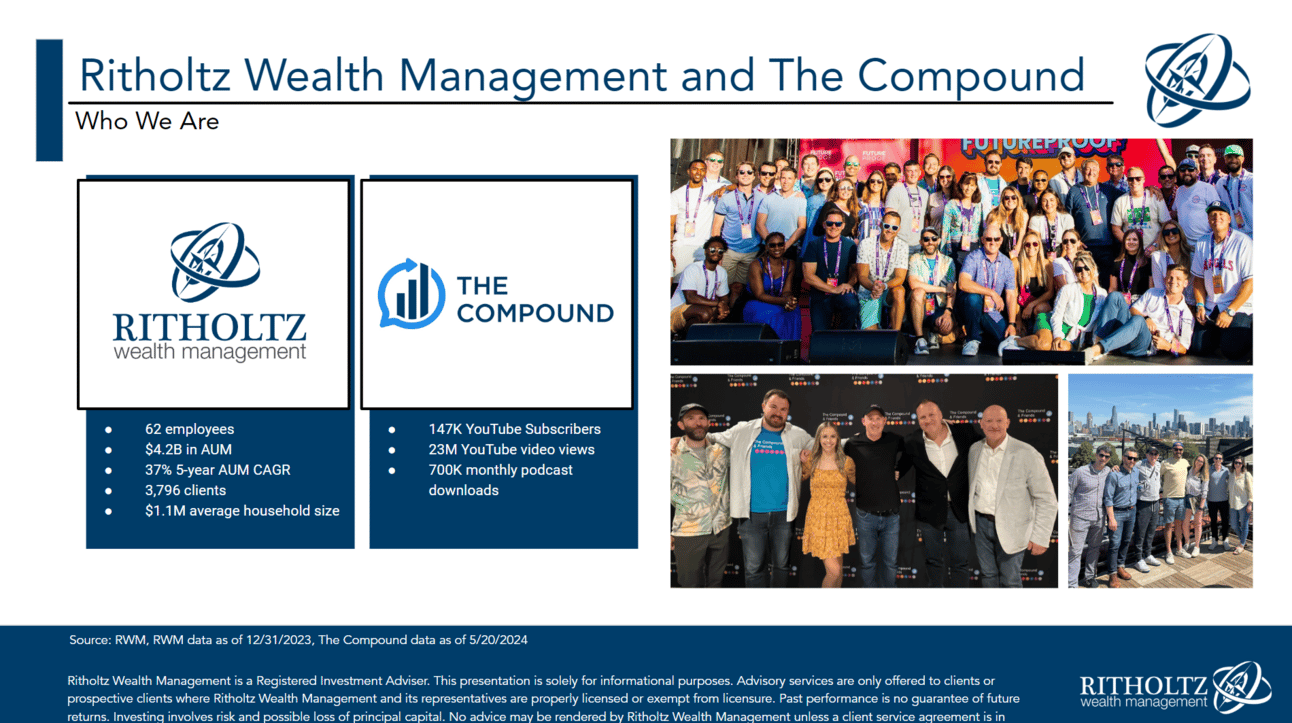 We reach millions of investors and traders on social media and our popular podcast The Compound and Friends. We also host an annual wealth management industry festival in Huntington Beach, California every September. This year we’re expecting between 4 and 5,000 industry professionals from financial advisors to fintech executives to asset managers. The panels and networking are essential and the parties are lit AF, as the kids say.