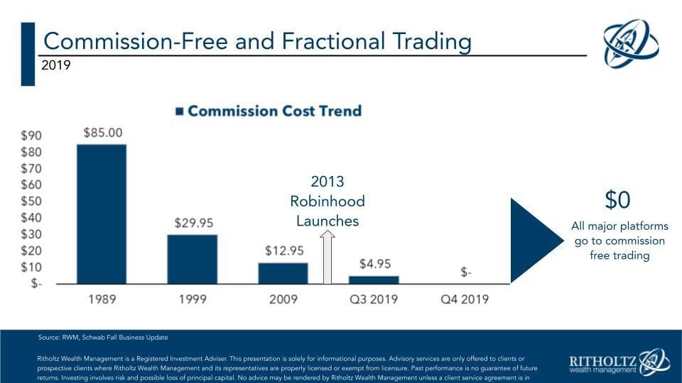 Needless to say, this was an explosive development for investors and advisors of all generations. Commission-free stock and ETF trading has opened up a whole new world of possibilities now that it has been embraced - even if reluctantly by some of the firms in this room.
