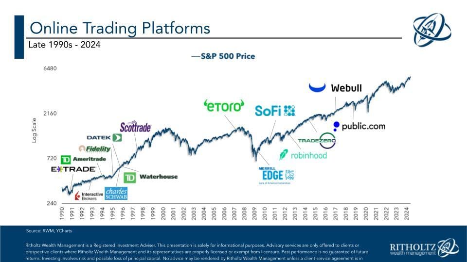 And since then, we’ve watched as investors went from placing trades on a desktop computer to using laptops and then eventually apps on their phones. Trading got faster, cheaper, more efficient and easier for people who had never been exposed to the stock market before. Trading is now a mainstream activity among Americans of all ages, all educational backgrounds, genders, ethnicities and vocations. Virtually anyone who wants to get involved can get involved. We take this trend for granted but it’s truly a different world today from 25 years ago.