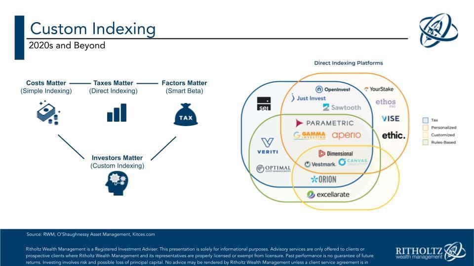 We have become better at our jobs as a result. In my opinion, advisors who have embraced custom indexing tools are leapfrogging ahead of the rest of the industry.