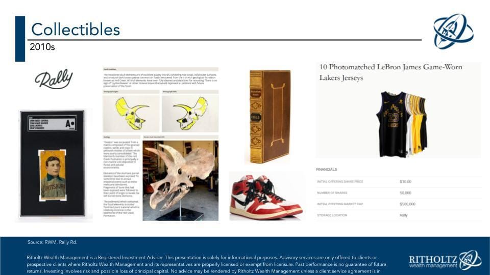 Turning collectibles into tradable assets is another way in which the markets have changed. Enabling people to buy and sell historical artifacts, baseball cards, classic cars, music and sports memorabilia, cases of wine, famous works of art and more has led to people thinking bigger about what it means to be an investor. I can envision a day when these types of assets are assigned something like a CUSIP so they can sit alongside stocks, bonds and funds in a brokerage account giving investors a complete and holistic view of their portfolios.