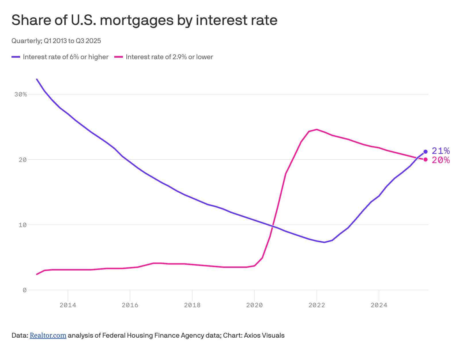 Here’s the new story - “The golden handcuffs are slipping: For the first time since 2020, the share of U.S. homeowners with mortgages set at 6% and higher, exceeds those with mortgages below 3%.”