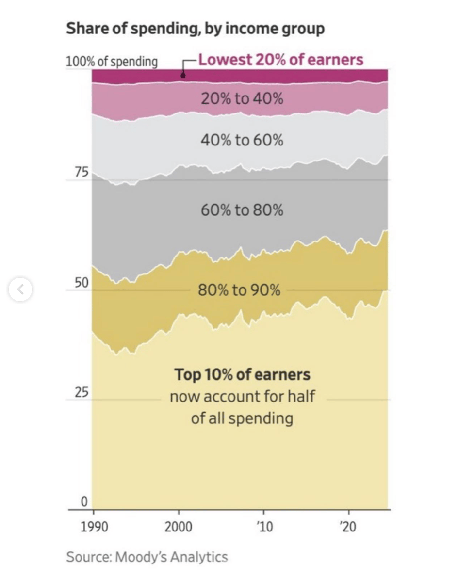 Record corporate profits, investment valuations driving top half of households to spend, vacation, buy concert tickets, subscribe to shit, etc